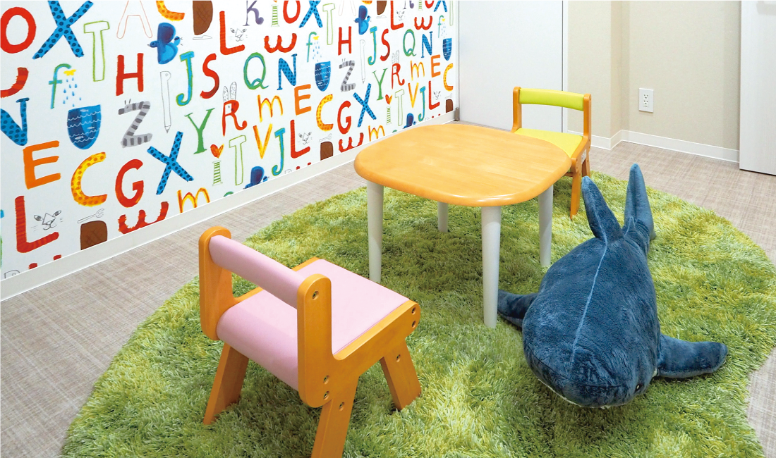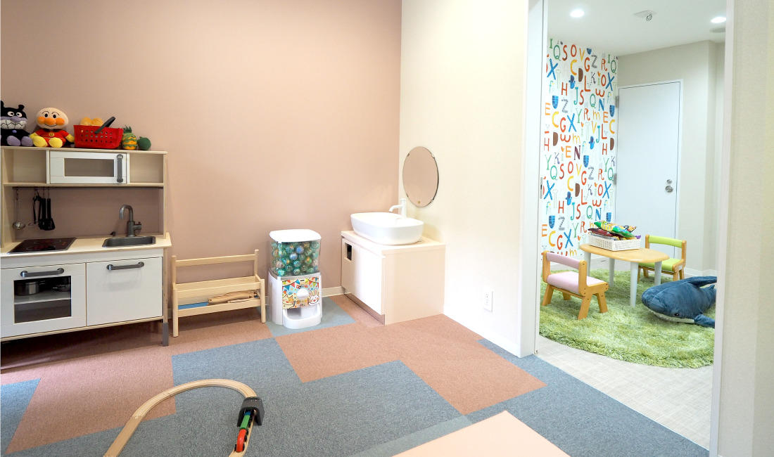 小さいお子さまも安心して通える、キッズルームとおむつ交換台、
