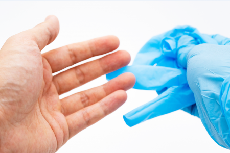 当院では、患者さまごと使用する手袋、コップ、エプロンも使い捨てにします。スタッフ一同、細心の注意をはらい消毒・滅菌に取り組み、安全・安心・誠実な治療を目指しています。