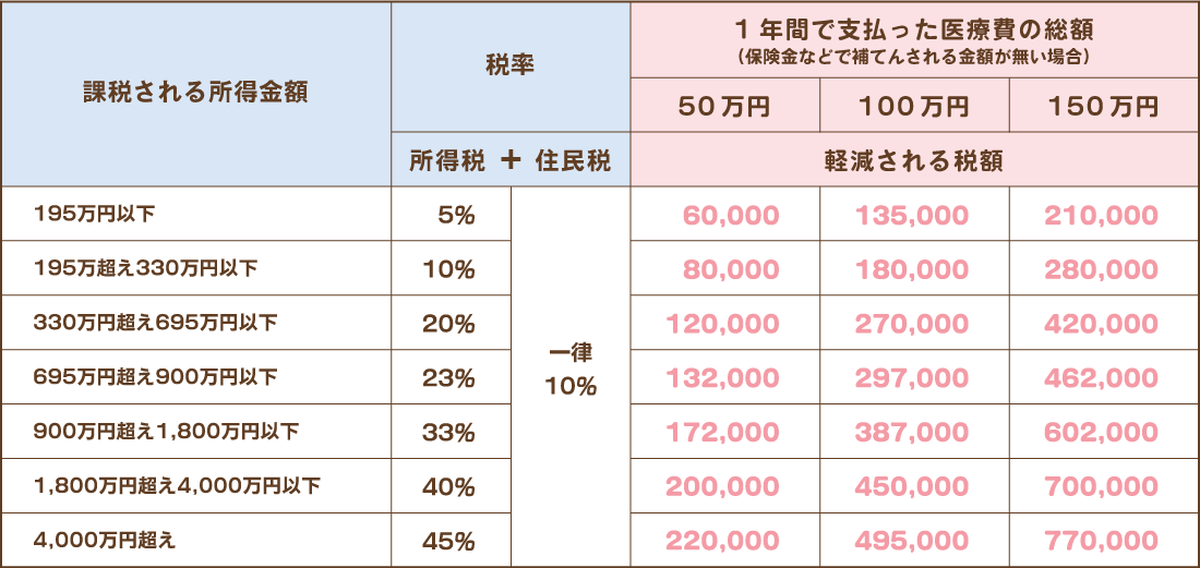 | 所得税 + 住民税 | 軽減される税額 | ||||